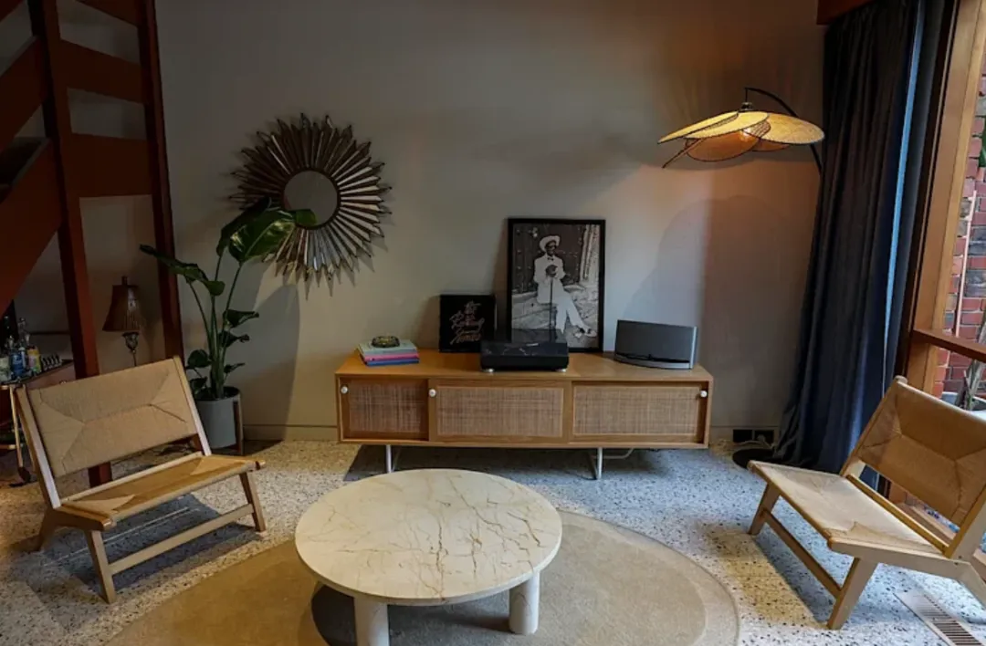 屋内不仅铺设了精致的水磨石地板,还配备了嵌入式家具。在迎接潜在买家时,屋内甚至播放着Talking Heads的唱片,营造出浓厚的艺术气息。
