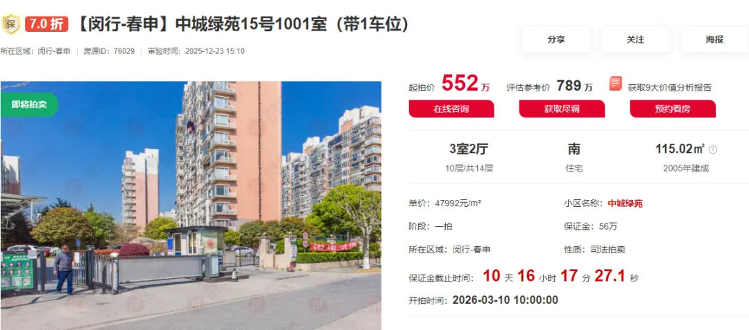 【闵行-春申】中城绿苑15号1001室(带1车位)-一拍