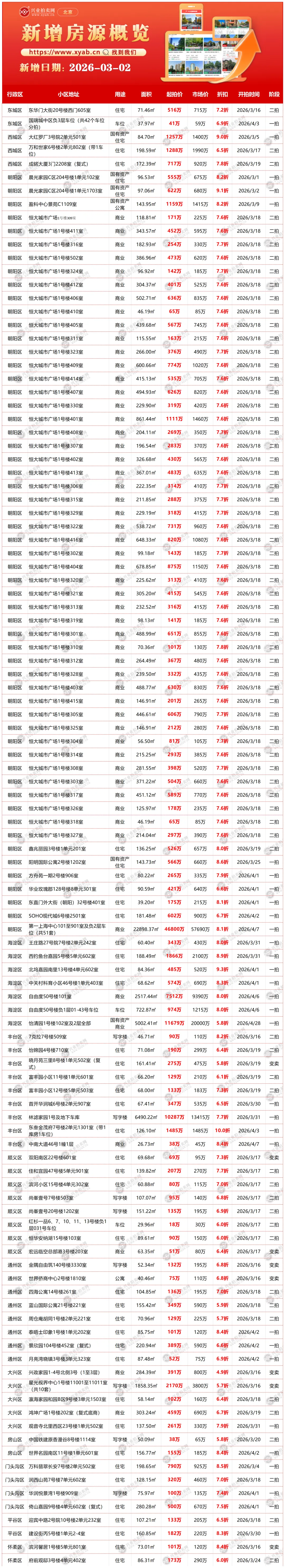 北京拍卖房产昨日新增详情
