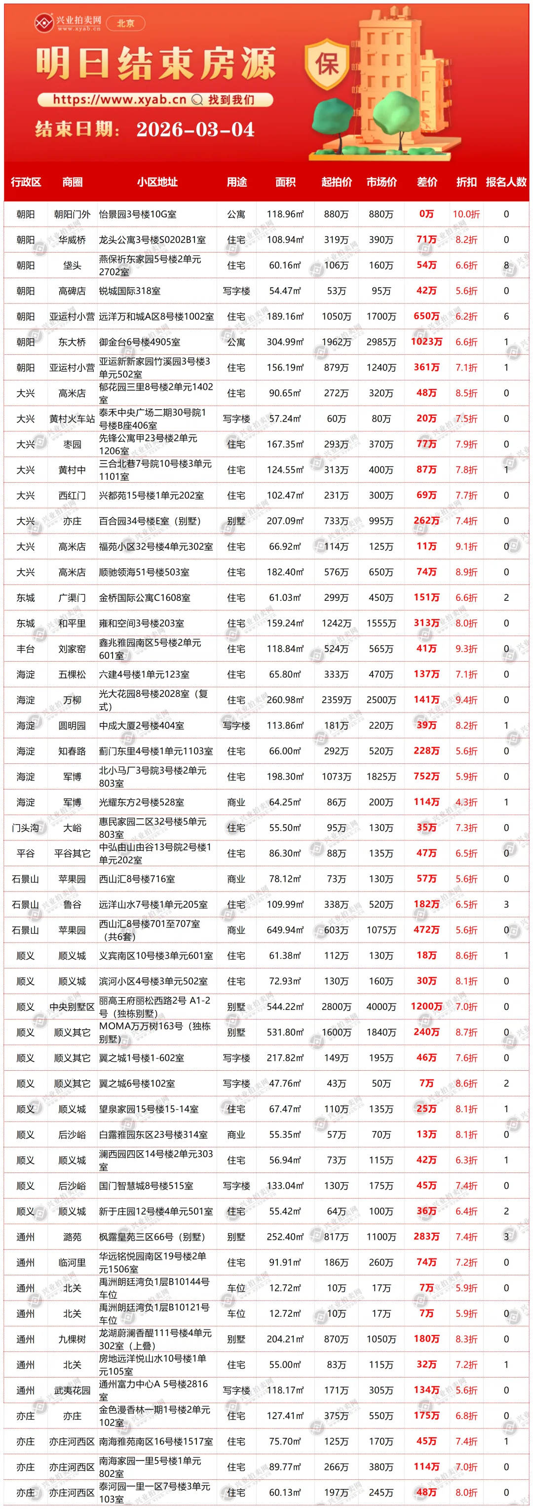 北京拍卖房产明日结束房源