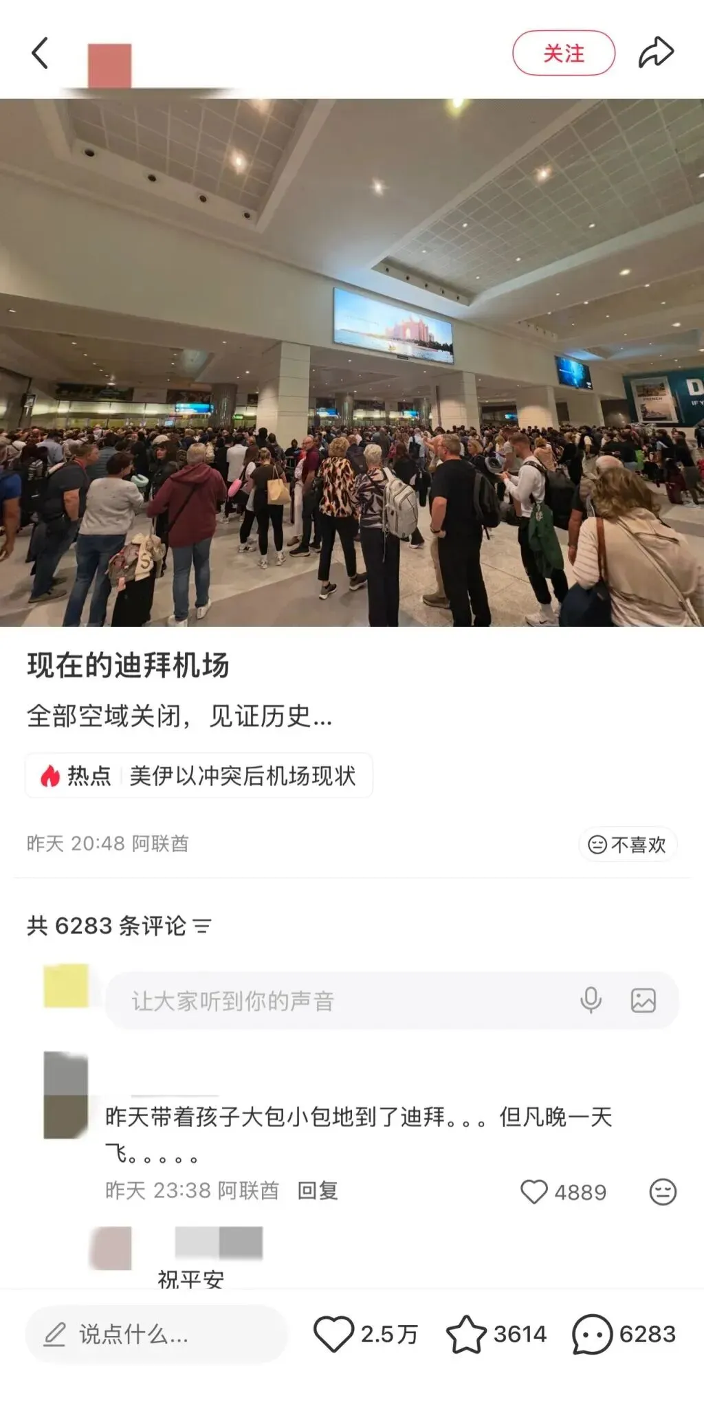 有人晒出航班取消的短信截图,有人在问怎么进旅客滞留群,帆船酒店起火的火光在社交平台反复转发。2万多名旅客停在迪拜,机场爆炸的消息戳中了很多人敏感的神经。