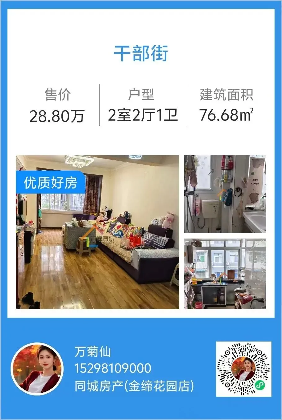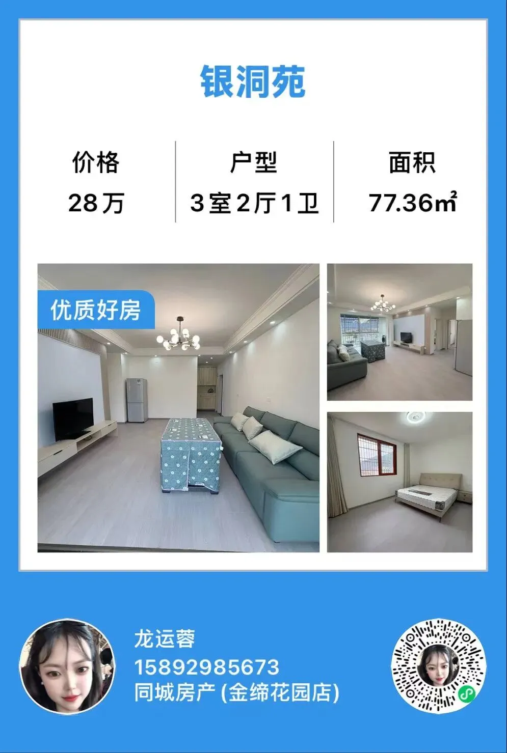>【万源房产】银洞苑,2室2厅,面积77m²,家具家电齐全,拎包入住,总价28万