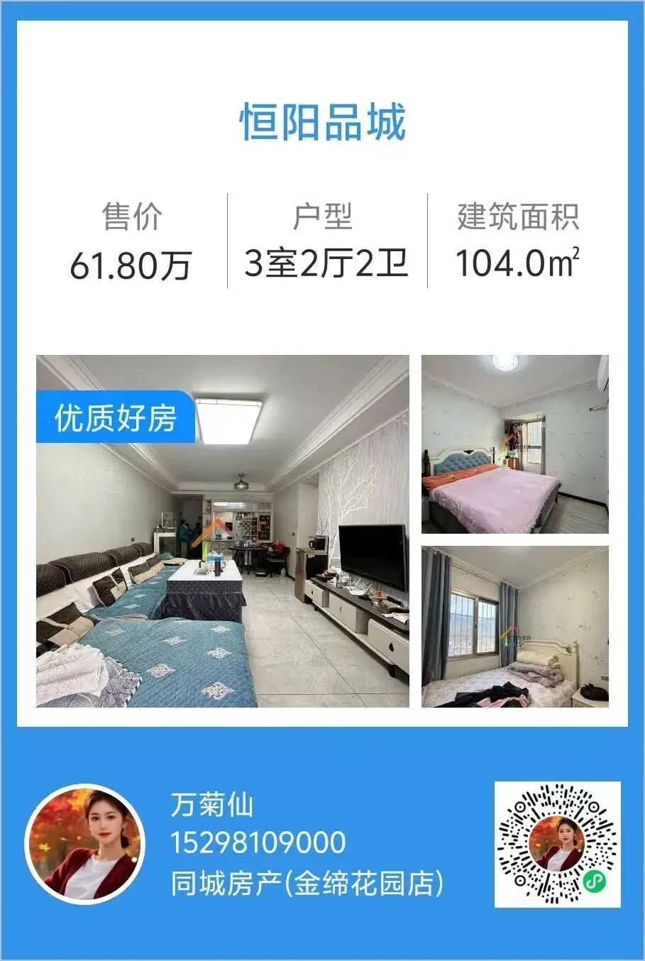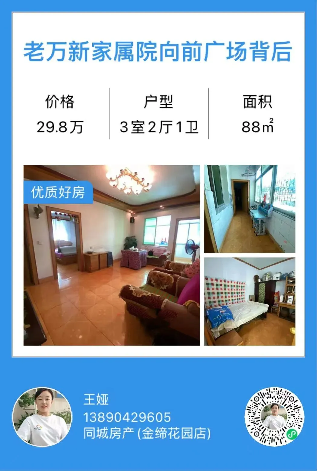 《1377》总价只需32.8,饮料厂旁边精装三房,面积100平,全屋中央空调,拎包入住。13890429605