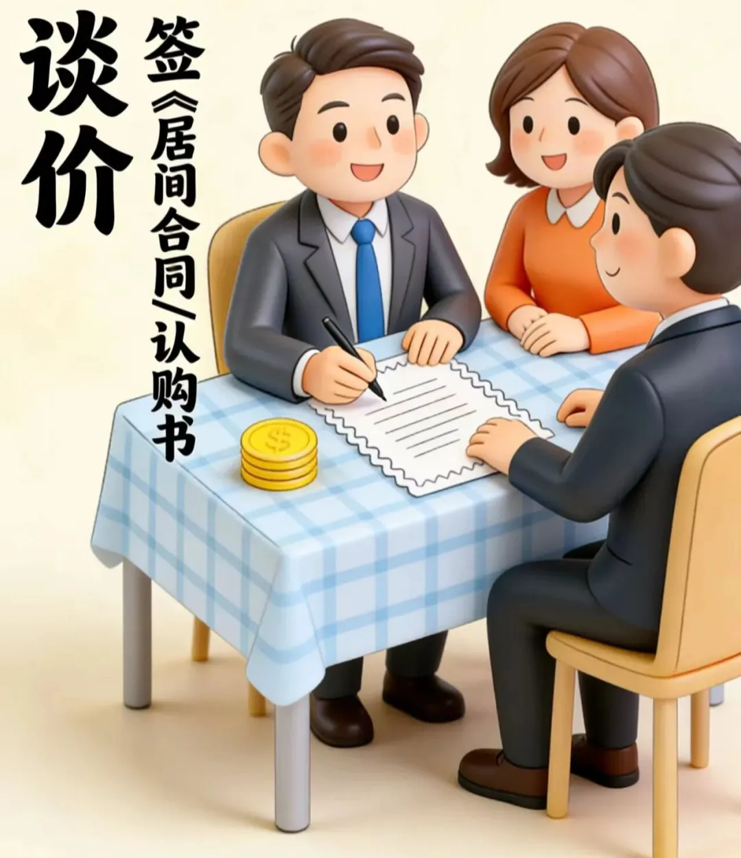 价格谈妥后,先签意向合同,再交定金(通常 1–5 万)。