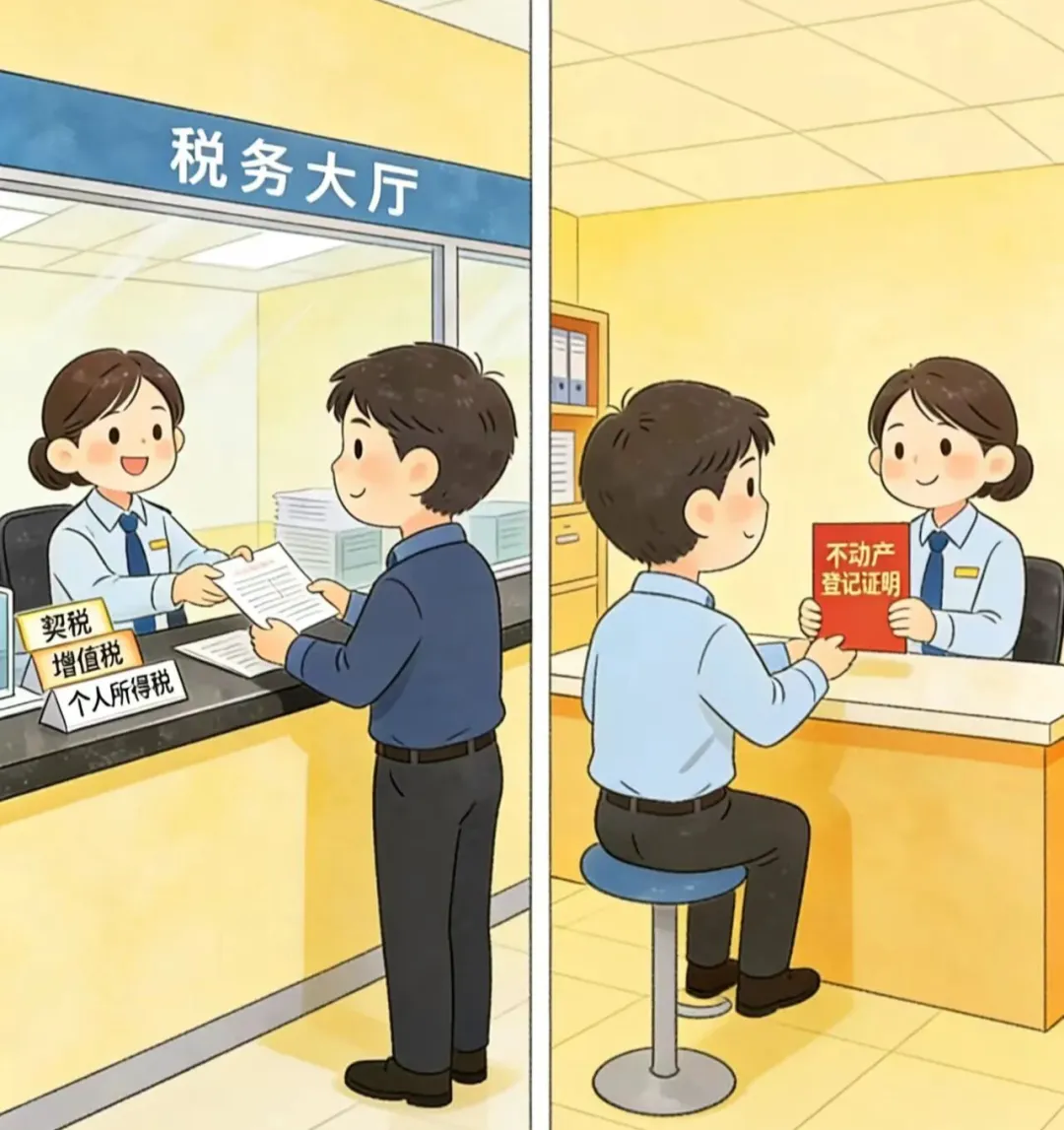 ⚠️ 提前约定:税费由谁承担,写进合同。交完税,当场办理不动产转移登记,这一步办完,法律上房子就是你的了。