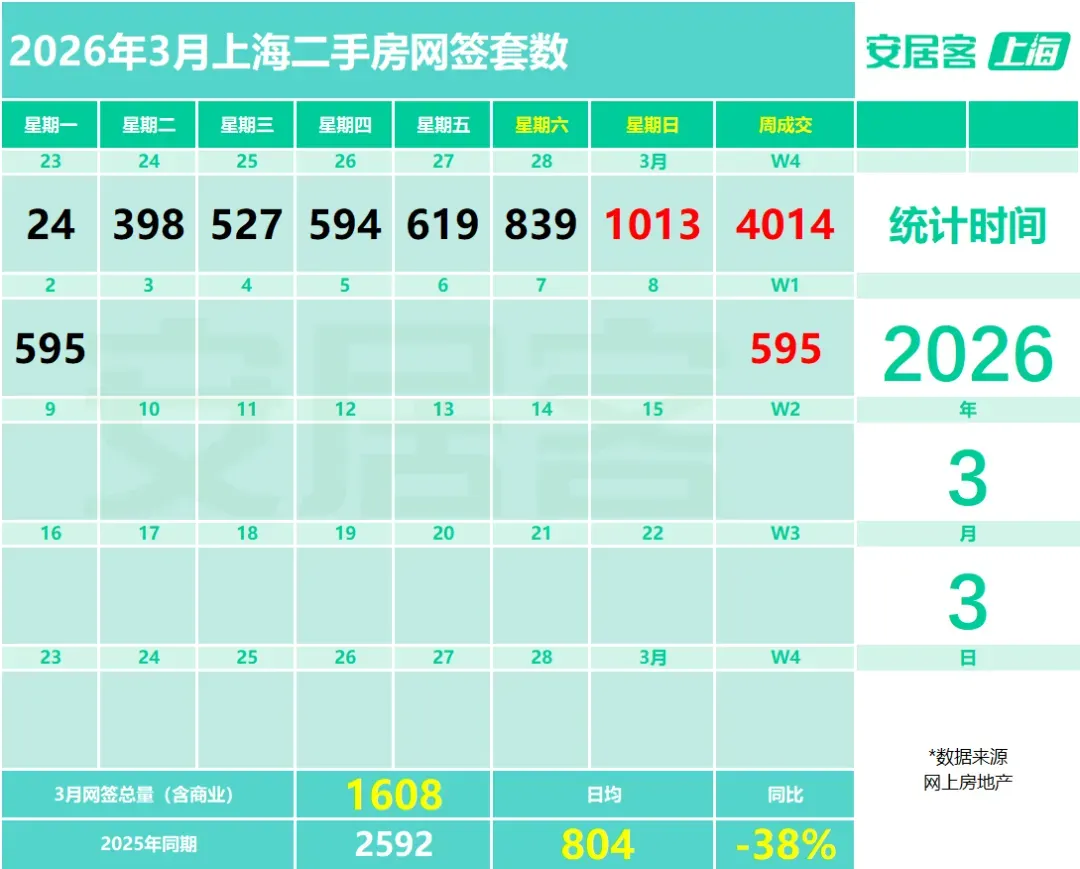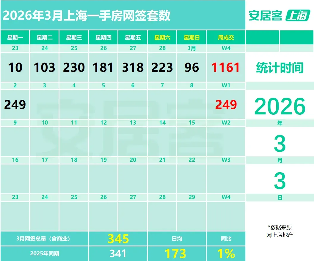新房249套,二手房595套!3月2日上海网签数据出炉!