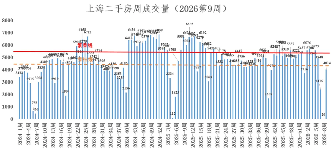 2026年第9周,回归交易后的第一周,上海二手房成交4014套。