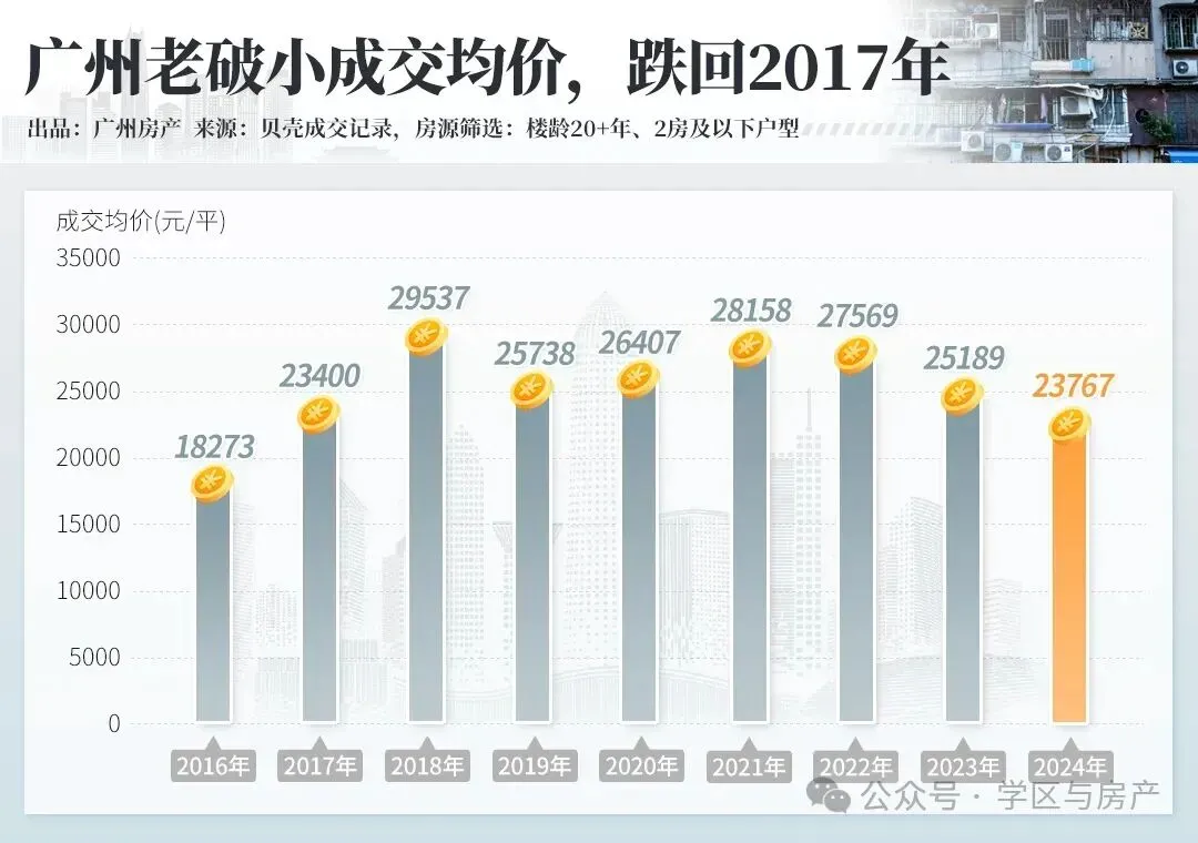 过去20年,楼市普涨时代,就算是差的房子,也能鸡犬升天。但现状,广州楼龄20年+老破小,成交均价已经跌回2017年。老破小的贷款年限+房龄≤50年,一般超过30年的房子,贷款年限会受限制。很多老破小的户型已经过时,没有物业管理,楼面外观老旧,水电线路排水管道老化,居住体验变差,以后接手的人群比较少。未来的购房群体逐渐年轻化,年轻人看重的则是小区环境,全新房,户型格局,只要是地铁沿线楼盘,就可以接受。越秀学位老破小的房子,居住体验本身就不好,加上学位价值在稀释,近几年房价回落10-30%,如果房子闲置,学位不占用,可以考虑放盘,置换更优质的资产。楼层较高、未来没有位置加装电梯的楼梯楼,年轻人看不上,老年人也不适合养老。这种房子的需求人群收窄,以后注定会被市场抛弃。随着政府大规模建设保障房,未来老破小的趋势,要么横盘,要么持续走下坡路。有机会就尽快出掉,置换更优质的房子。目前的楼市是买方市场,对于业主的要求则是,谁能够有更多的议价空间,买家就入手哪一套。