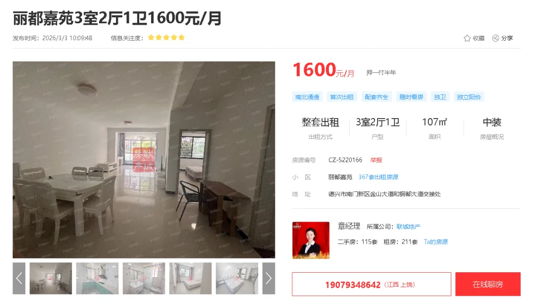 【德兴房产】丽都嘉苑3室2厅1卫仅需1600元/月,近凤凰小学、丽都幼儿园,周边商圈成熟,生活方便