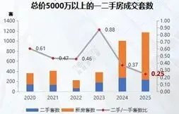 该价格段主要为资产配置,价格因素影响较小。2025年2000万以上成交套数相比2023年上涨22.7%,反映高端客户的资产配置需求依然旺盛。其中2000-5000万价格段二手房总需求相对稳定,高品质供给能驱动需求释放,二手房价格优势带来的分流不明显。5000万以上价格段二手房受新项目供给推动,2024-2025年成交连续上涨,二手房分流弱。因此新政后对该价格段二手房市场影响较小。
