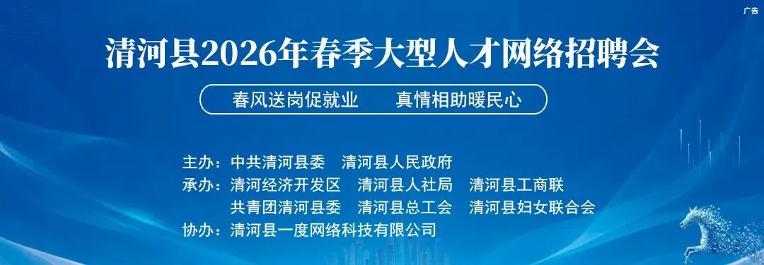 点击上方蓝字关注我们,招聘求职、房屋信息、二手交易、电话查询尽在清河一度信息港