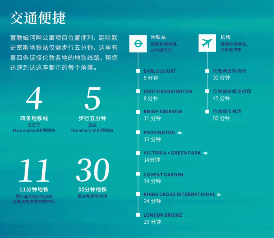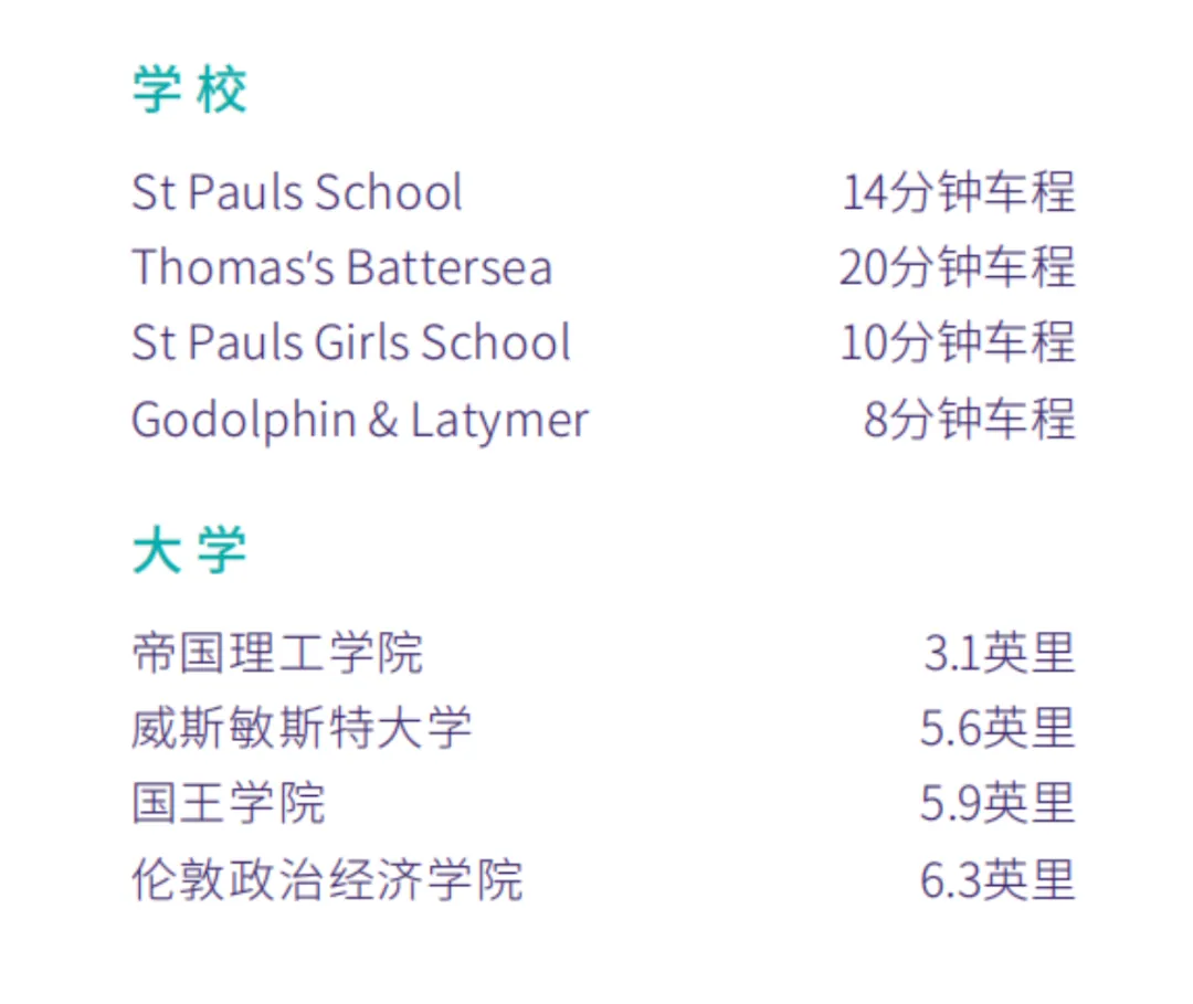从项目附近乘坐地铁可方便地到达多所大学,如帝国理工学院、伦敦政经学院等。