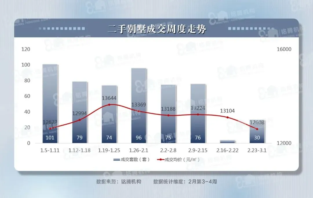 二手房各成交业态中,高层共成交1943套,合计约8.63万方,建面均价9299元/㎡;洋房成交128套,合计约1.48万方,建面均价10645元/㎡;别墅成交30套,合计约0.72万方,建面均价12608元/㎡。