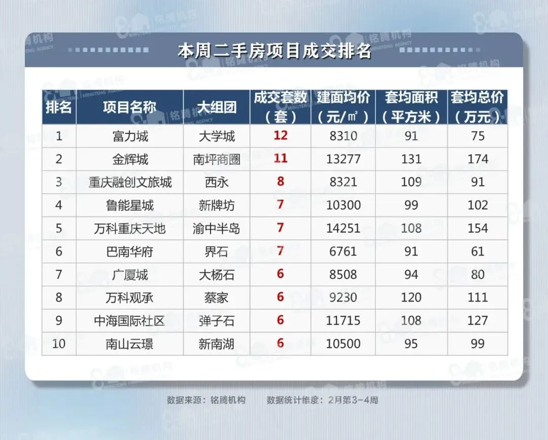 >铭腾:重庆上周二手房周报出炉,量价大变化