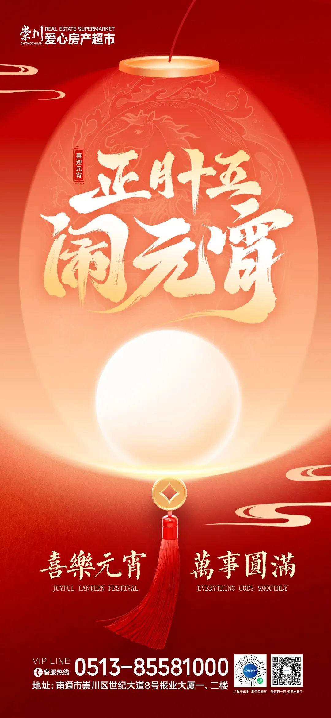 灯火映万家,良辰共此时|崇川爱心房产超市祝您元宵喜乐!