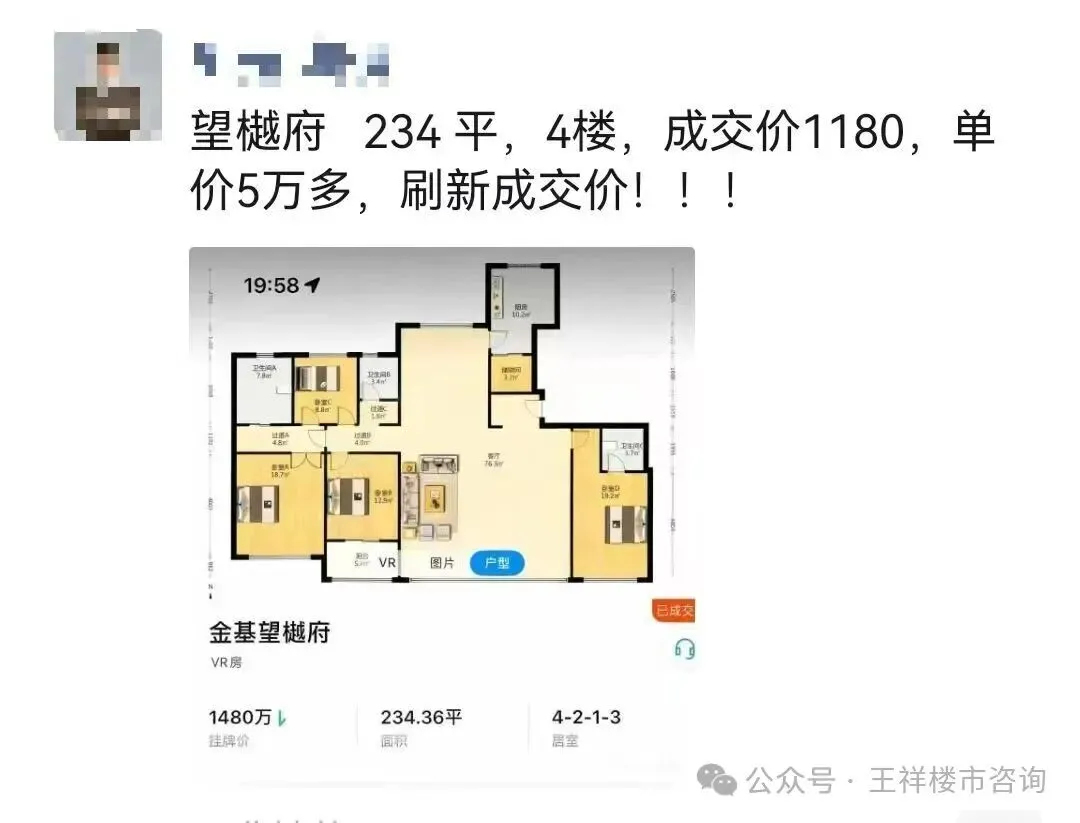 比方说,金基新睿樾府的洋房顶楼,单价卖到48000多/㎡,博雅和著非洋房的低楼层能卖到42500元/㎡,高层住宅金基璟樾府143㎡三房户型的低楼层能卖到43200元/㎡,伟星誉璟府195㎡成交总价超过800w,而近期新成交的金基望樾府234㎡的大户型,据说单价达到了5w/㎡以上!