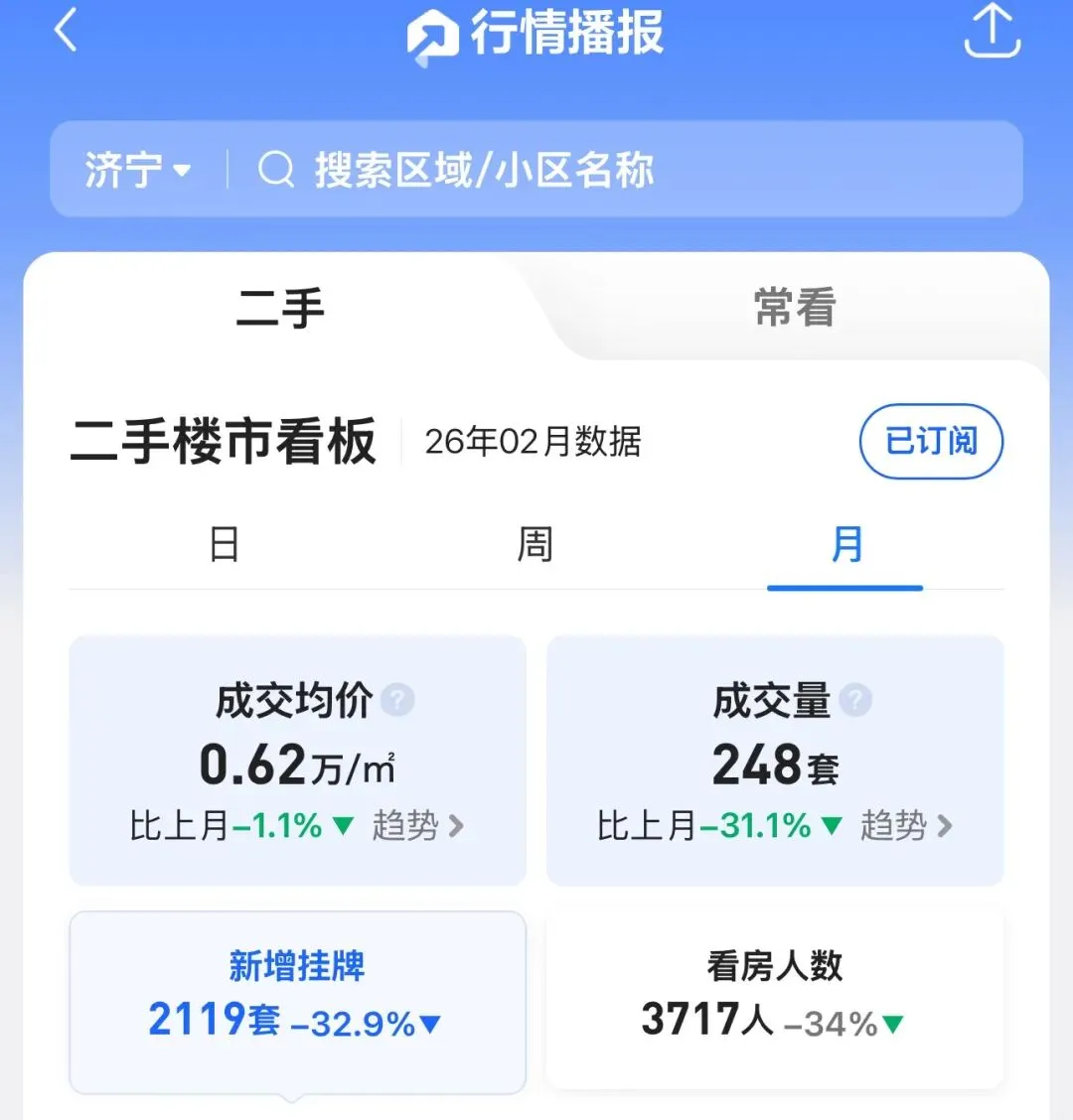 济宁二手房每周成交数据行情播报|26年2.23-3.1