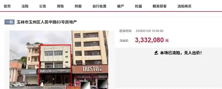 此前这栋房子进行过一次拍卖,起拍价为333.208万元,没有人报名竞拍而流拍了。