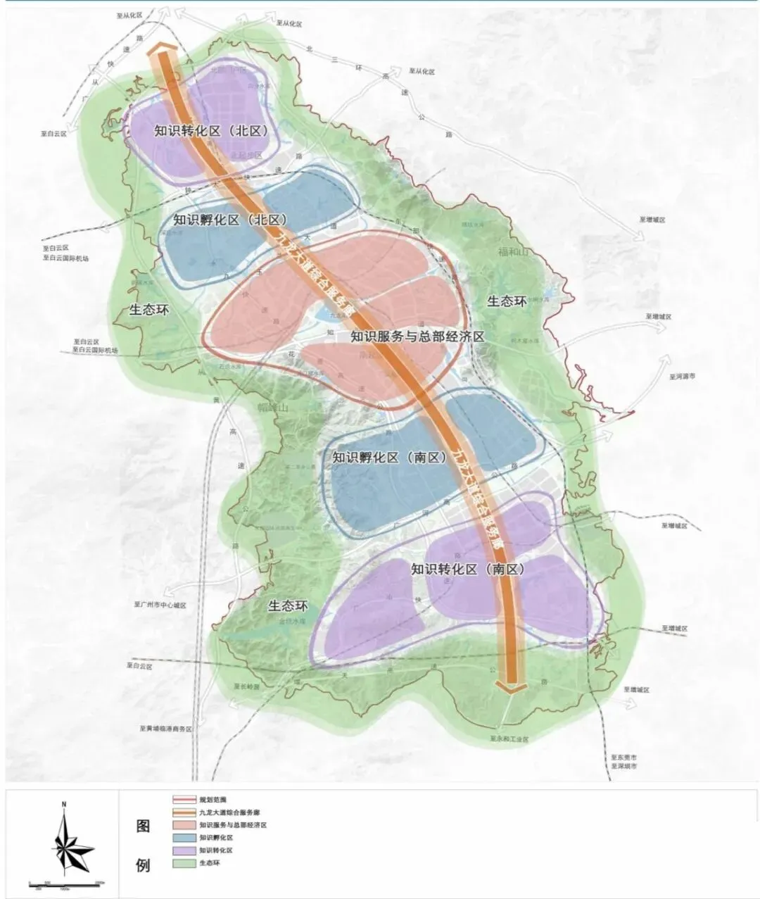 地理位置中新广州知识城位于广州市区东北部( 黄埔区北部),距离广州城市中心区约 35 公里、广州新白云国际机场 25 公里。北面与白云区钟落潭镇接壤、南面为广河高速公路、东面与增城市中新镇相接、西面为帽峰山省级风景名胜区。