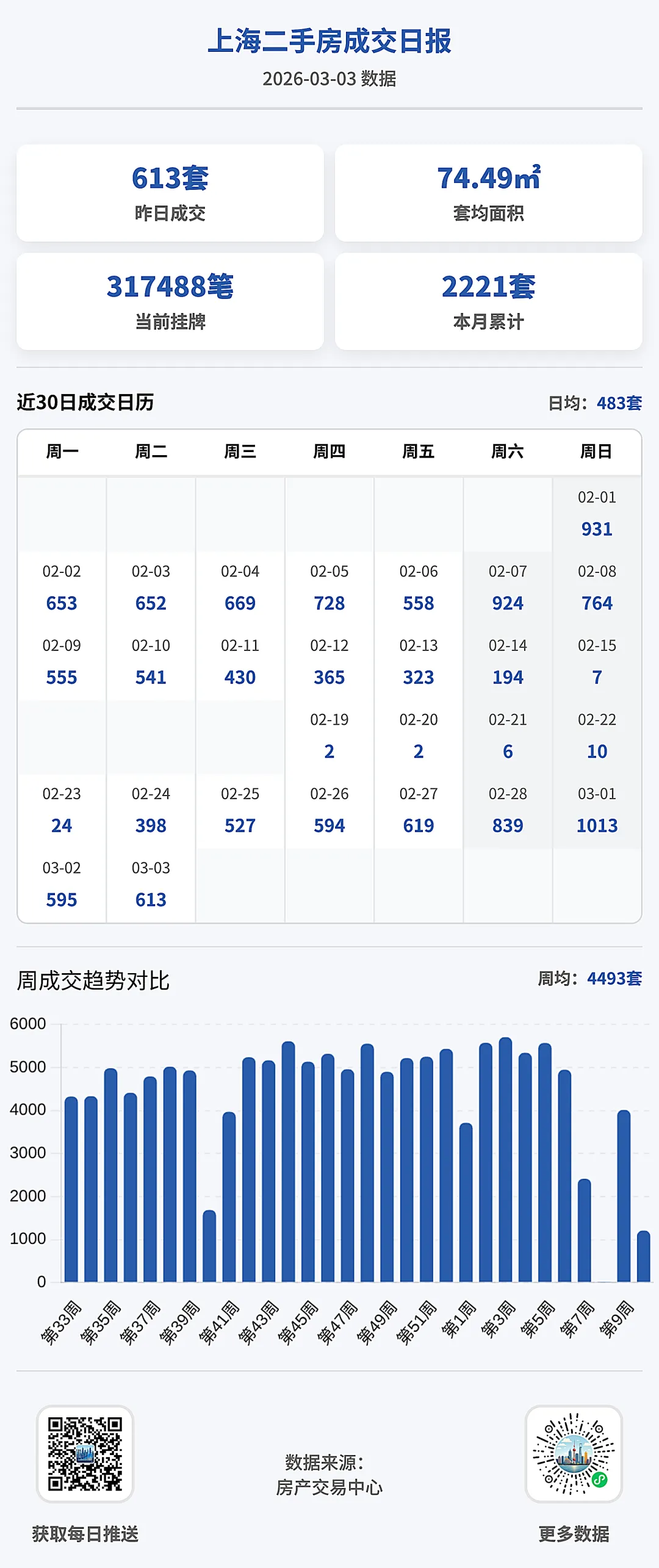 3月3日 周二,上海新房和上海二手房成交量合计858套