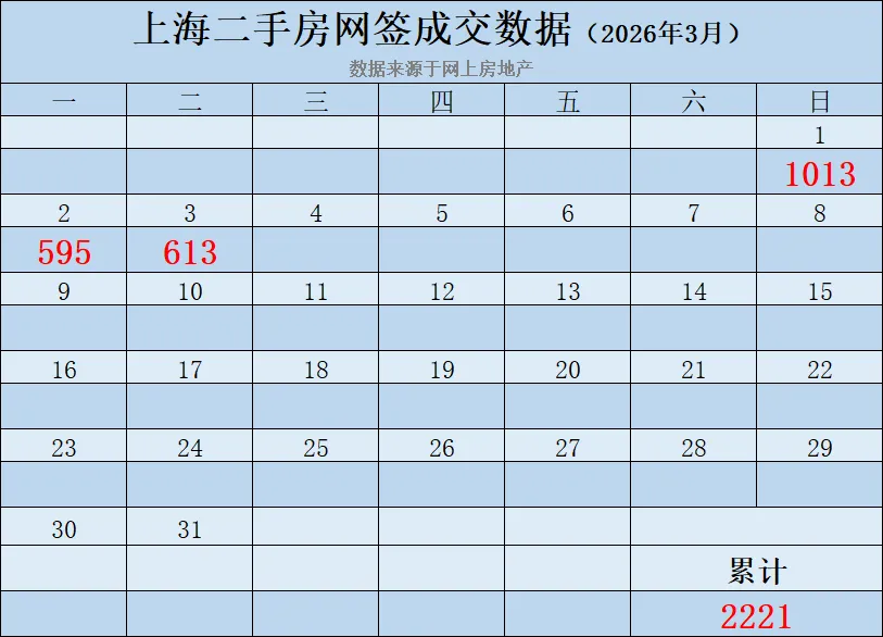 2026年3月上海二手房成交统计:(数据来源网上房地产)