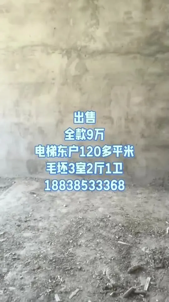 房屋详情:急卖 白菜价 有电梯3室2厅1卫9万一套。买完即可装修18838533368 五楼135平米东户16.8万一套
