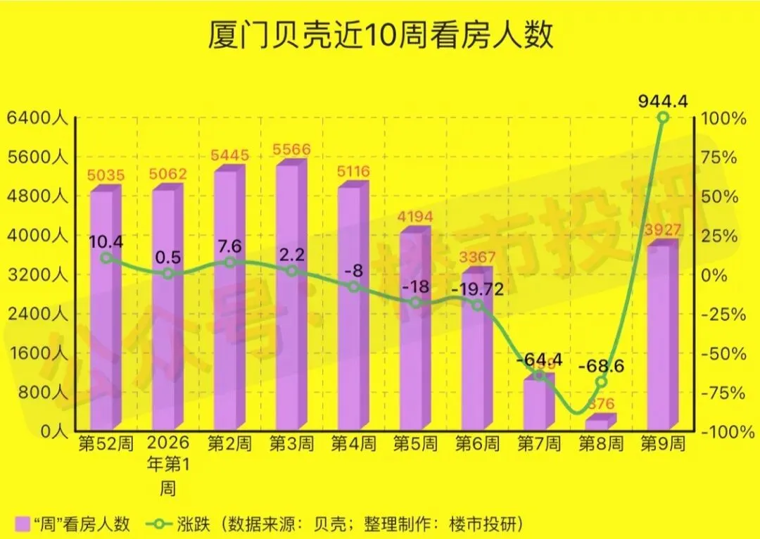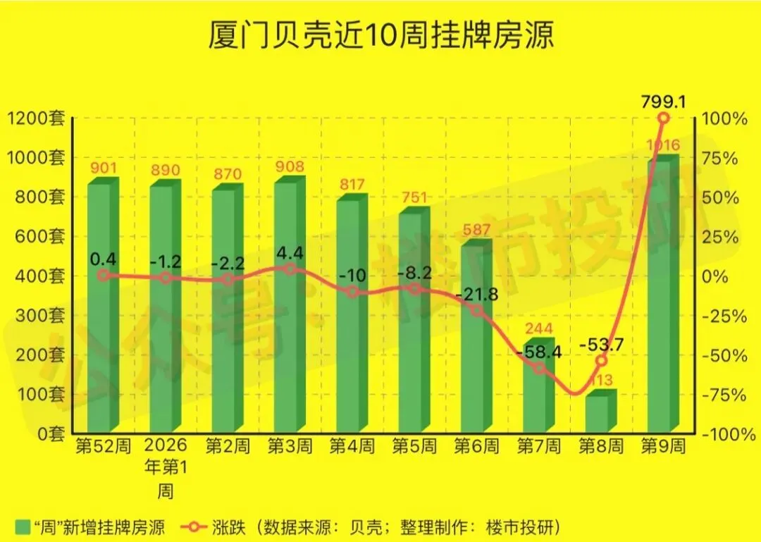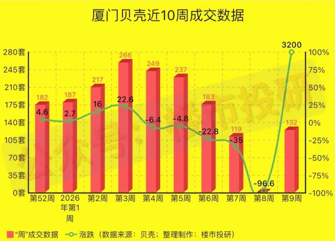 2026年第9周(2月23日-3月01日),厦门贝壳平台二手房相关数据一览:
