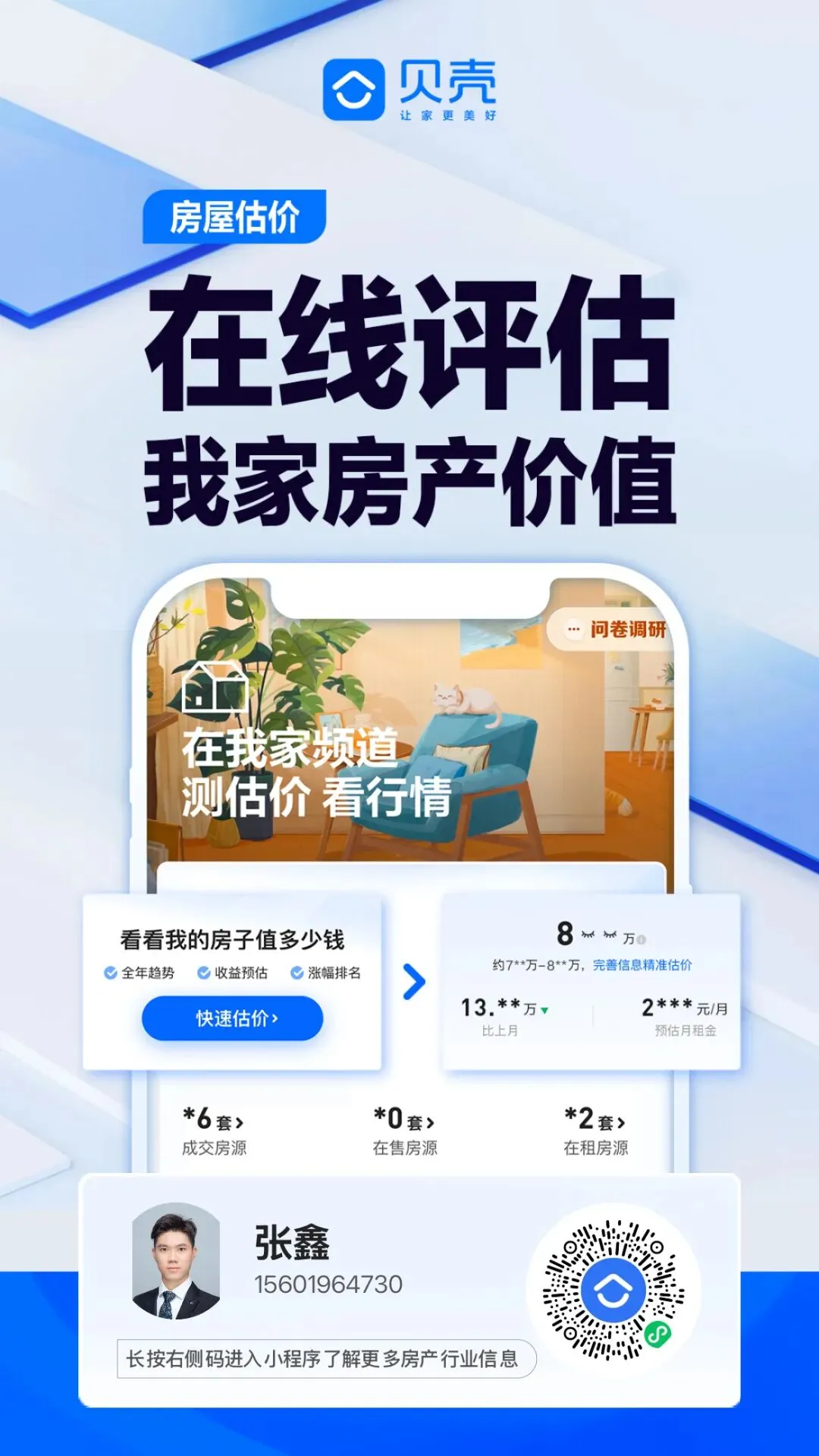 本文所载信息为经纪人独立观点,不代表所在机构意见,亦不保证相关信息的准确性和完整性。文中所述内容和意见仅供参考,不构成市场交易和投资建议。您好,我是【上海链家】置业顾问【张鑫】,2020年本科毕业即入职链家,至今从业6年,勤勉效率、真诚专业,很高兴为您提供服务!