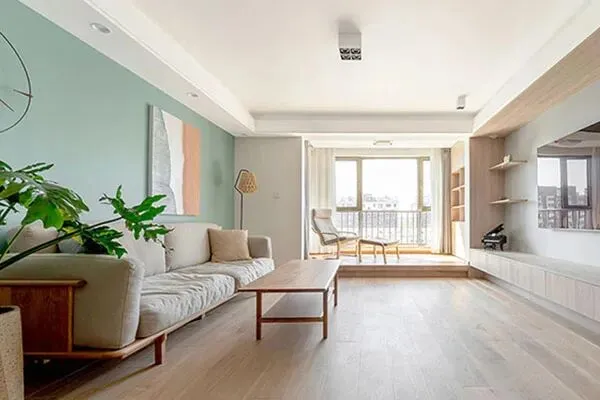 这一天,上海的气温有所回升,城市里洋溢着暖阳气息,走在上海市黄浦区的滨江区域,倍感舒适了。在步行了约10分钟之后,就来到了Alfred的新家了。轻叩大门,两个孩子欢愉的为我们开门了,一家人早已等候我们多时了。踏入家的内部,刹那间,一阵简约淡雅的北欧风情迎面而来了。设计师Joy将这个家以北欧风作为主导。在光洁温和的原木地板,与线条简练的舒怡沙发,一面清新素雅的淡绿色沙发背景墙,一并勾勒出了一隅舒欣的客厅空间了。有趣的是,这张沙发是一款网红的北欧沙发,它以高端原木作为了支撑,以米白色的优质面料作为了软包,营造出雅致的气韵来。这张沙发,它似乎在诉说着,欢迎你们的入座。而就当我们坐下的时候,彷如全然松弛,也把身心全部交给了这张舒展的沙发了。整个客厅里,不论是一家人在此闲聊两句,还是在这里看看电视,都是无比惬意的选择了。它抒写了家的舒适底色。