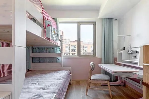 来到了孩子们的卧室,儿童房。在我们推门的时候,就让我们惊喜的发现了这间儿童房的美丽之处。设计师Joy为两个孩子,量身定制了上下铺的床,和一张以孩子身高为基础的书桌。可以说,这间儿童房,构筑起了孩子们的美好童年,也让他们身在其中,乐享着自己的情致了。毋庸多言,这间儿童房是孩子们愉快的天地了。