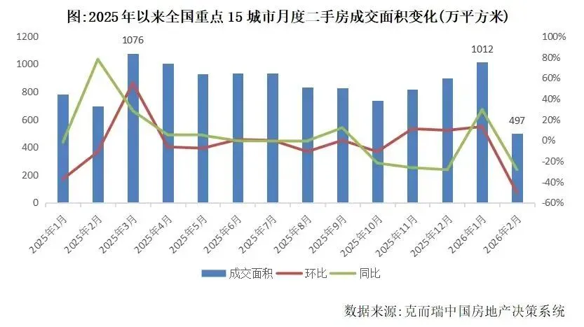 同时,全国重点15城市二手房成交1-2月累计达到1509万方,同比增长2%,这也表明全国主要城市大多已经企稳。