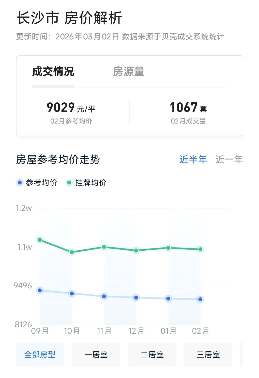回到长沙,从贝壳平台数据来看,二手房均价已连续三个月维持在9000元/㎡左右,价格逐步趋稳。