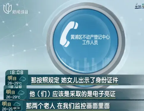 黄浦区不动产登记中心工作人员表示:“我们把录像调出来,也不能说有异常,我们也无法来识别这两个人到底是谁。”