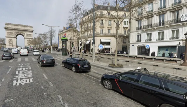 香榭丽舍大街150号建筑所在街景,距离巴黎地标建筑凯旋门的距离仅百余米