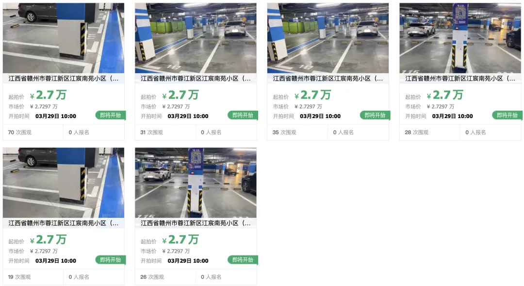 ▲ 赣州蓉江新区江宸南苑小区(龙湖天境)6个地下车位上架拍卖,房产所有权人为赣州锦誉置业有限公司