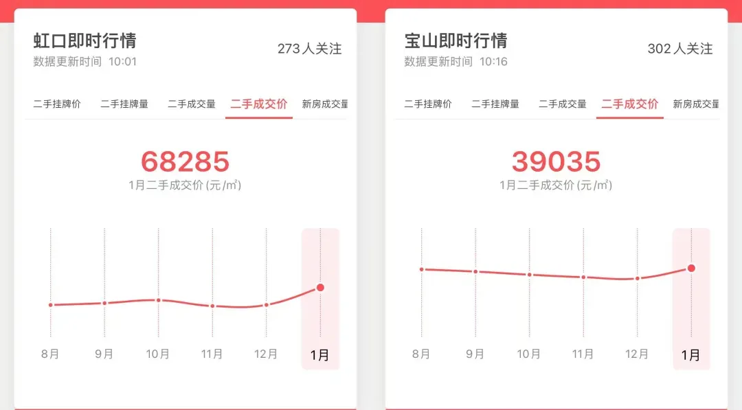 宝山:1月3.62万/㎡→2月 3.9万/㎡