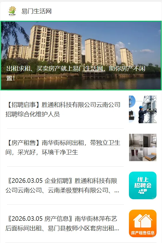 出租求租、买卖房产就上易门生活网,助你房产不闲置!
