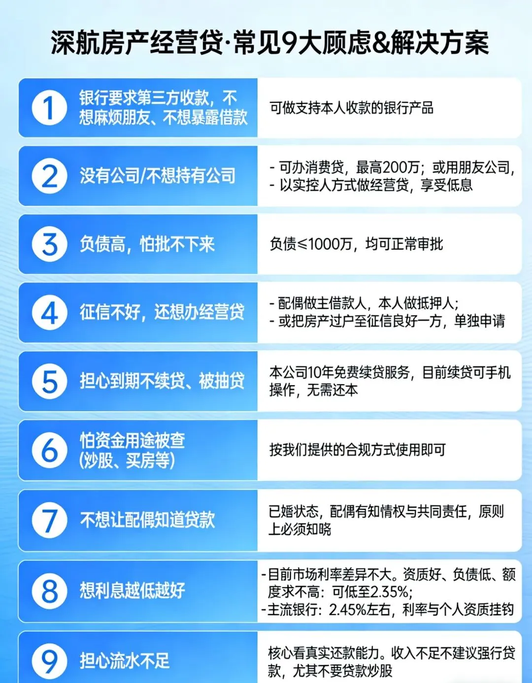 同样具备显著优势,贷款利率最低年化2.35%起,贷款期限可选择3年或5年,授信期限最长可达10年,且到期后免费提供无本续贷服务,能有效缓解客户的还款压力,让客户能够更从容地规划资金用途。在合作渠道方面,公司与深圳多家银行及房产评估机构建立了长期合作关系,不仅能为客户提供精准、公正的房产评估服务,还能依托合作银行的资源,为客户争取更优惠的贷款利率和更灵活的贷款政策。从而大大提高贷款成功率。