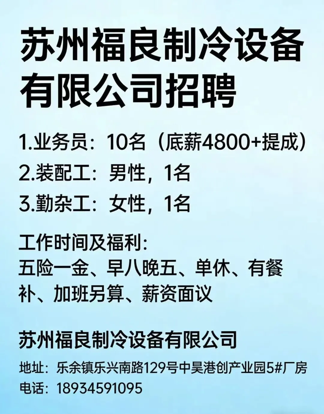 乐余镇乐坤路德濠张家港智造谷公司招聘(4.3)