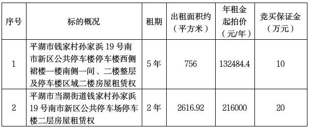 平湖市交通投资(集团)有限公司委托嘉兴市金平拍卖有限公司对下列国有房产租赁权进行网络公开拍卖,现将有关事项公告如下: