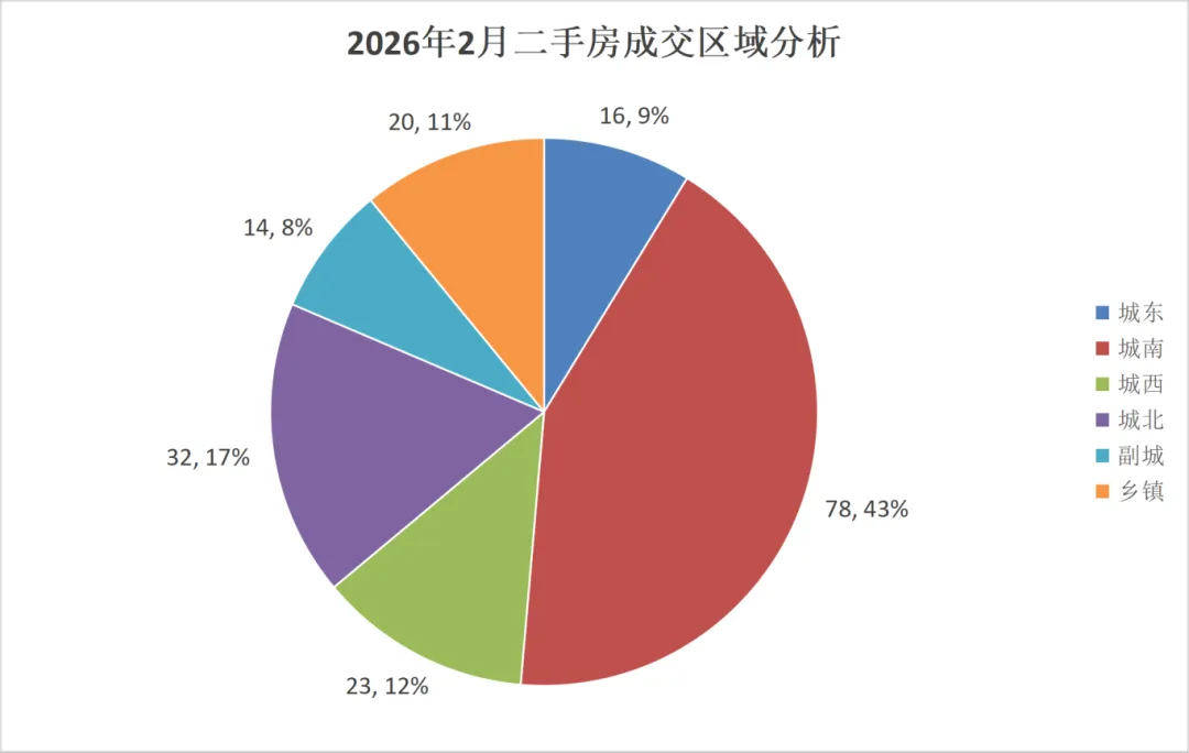 2026年2月二手房签约183套,签约面积20900㎡,签约量环比下降10.73%,同比下降33.70%。