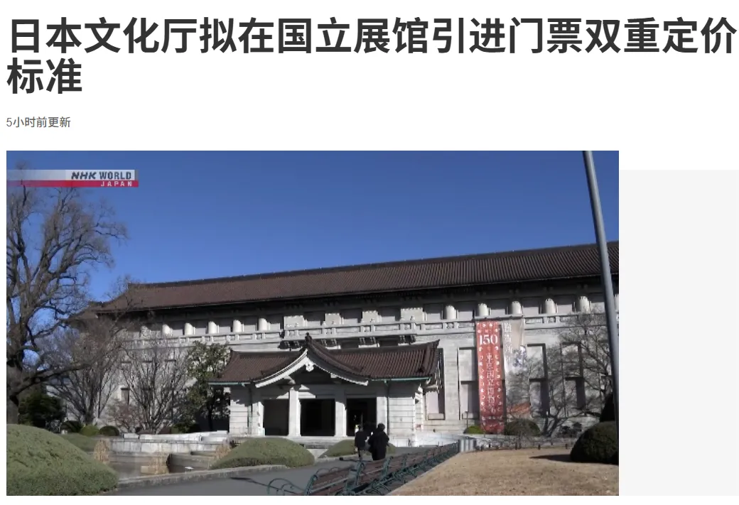 文化厅称,在日本全国共管理有12家国立美术馆和博物馆,目前这些展馆对日本人和外国人的收费标准相同。