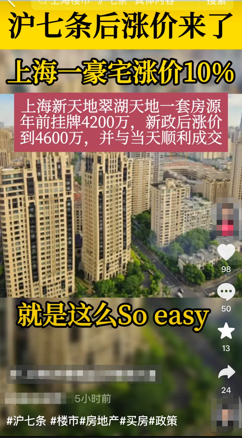 业主信心修复,惜售提价成常态,议价空间大幅收窄,甚至出现 “买家出到底价仍谈崩” 的情况。不同于以往 “新政→二手放量→新房跟进” 的逻辑,现在是 “新政→新房先爆→二手价涨”,市场逻辑彻底反转。