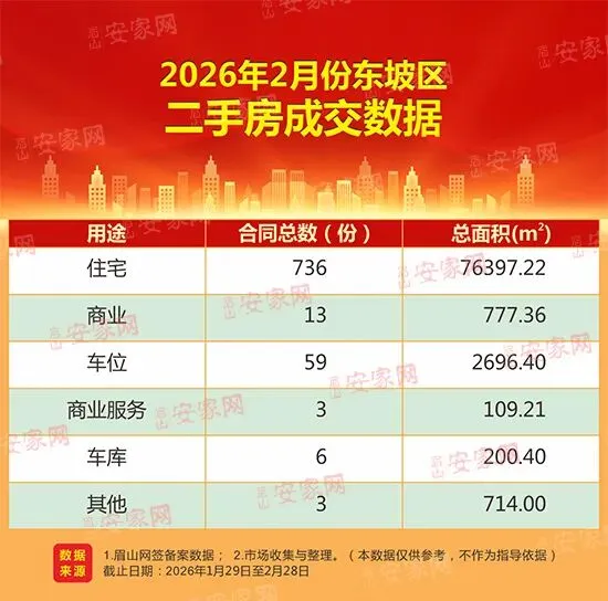 眉山二手房2月销量月报:总成交820套,成交总面积20894.59㎡。其中住宅成交736套,成交面积76397.22㎡;商业成交13套,成交面积777.36㎡;车位成交59套,成交面积2696.4㎡。商业服务、车库分别成交3套、6套,成交面积分别为109.21㎡、200.4㎡。其他二手房源成交3套,成交面积714㎡。