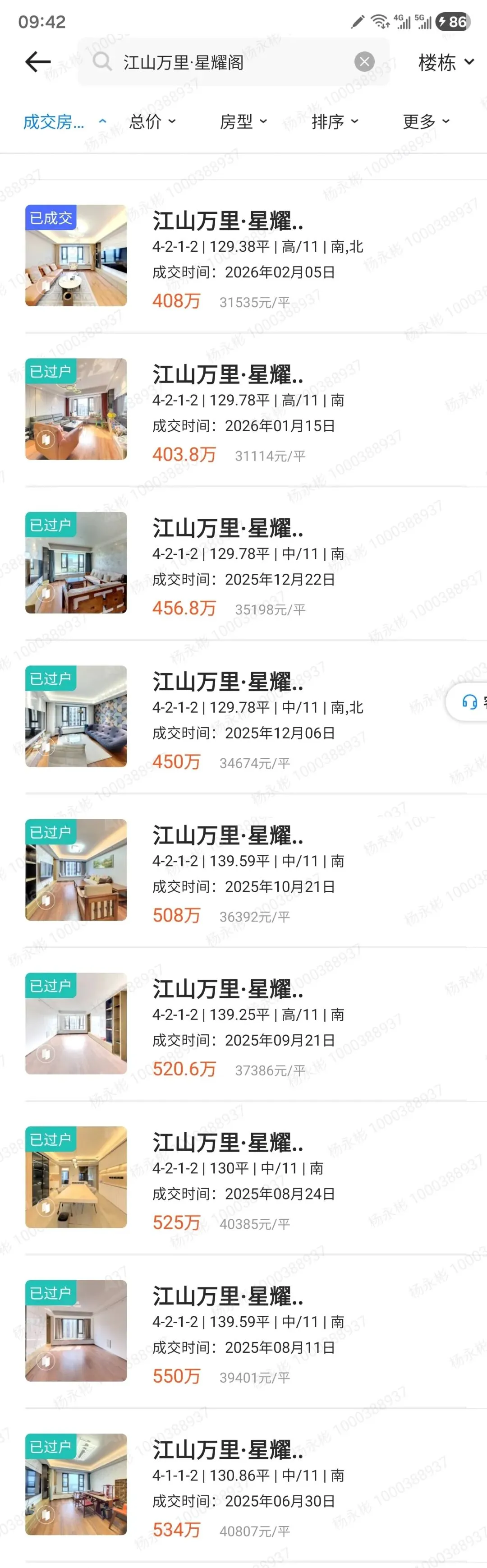 江山万里星耀阁6幢7楼中间套129洋房,带车位新成交447万。对比上一套成交的3幢顶楼408万,两个楼幢因为位置价差稍大,可以算作行情平稳了。昨天新成交的江山万里一期132户型,属于非标户型,不做行情参考。江元府新成交的低楼层155户型522.8万,对比年前成交的好楼层528万,行情有增长。宸芯里边套129好楼层,成交价340万,对比年前也是行情平稳了。