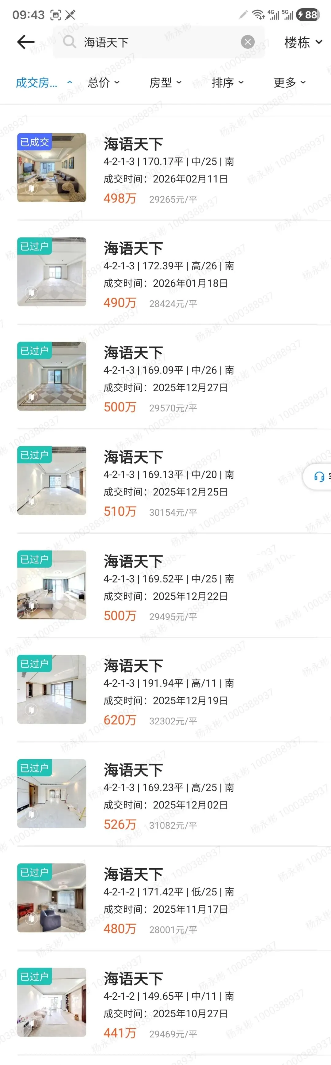年后是学区房求购高峰,盛世天城二期32户型,成交价在80出头。格兰云天一期33网红学区房成交价93万,几年砍了三分之二。中海寰宇天下二期139户型,最新成交价306万。107户型成交均价,还在二百二三十万左右。寰宇天下是毛坯交付后装修,成交价不能代表行情,就像另一个年后已成交多套的小区锦悦湾花苑一样。青藤学区房云江府成交多套,成交价平淡,房子太多,很难有太好行情。