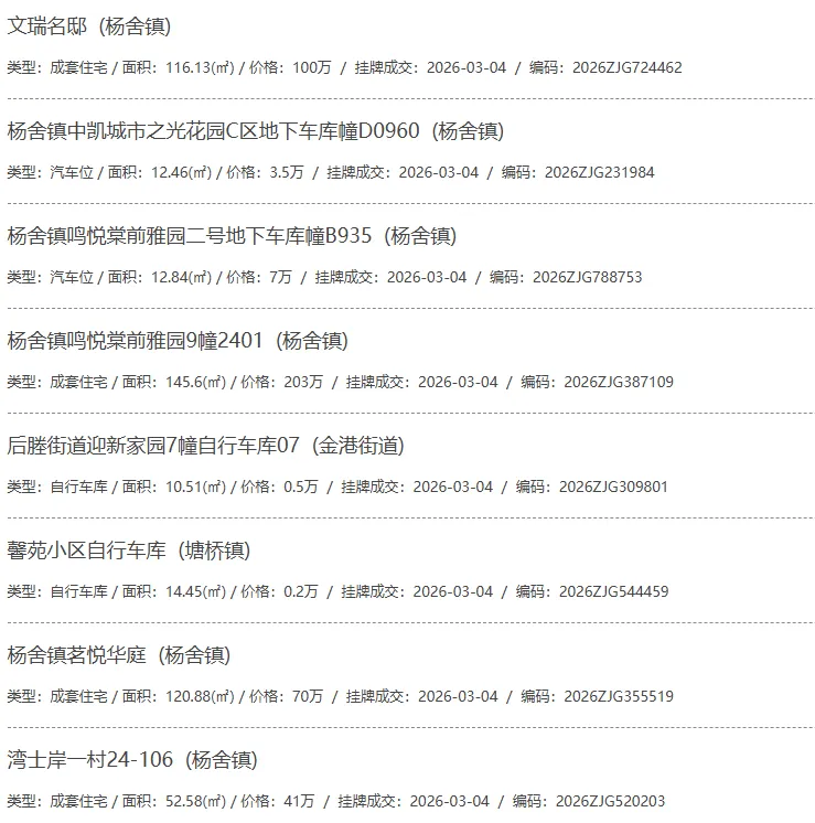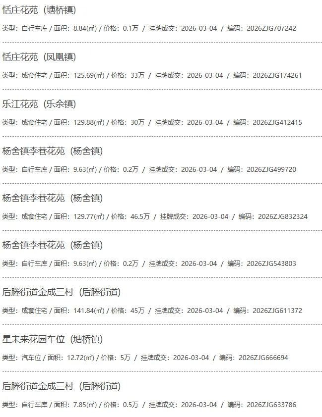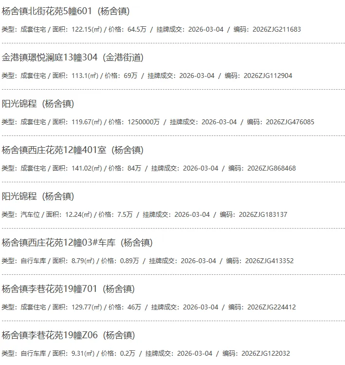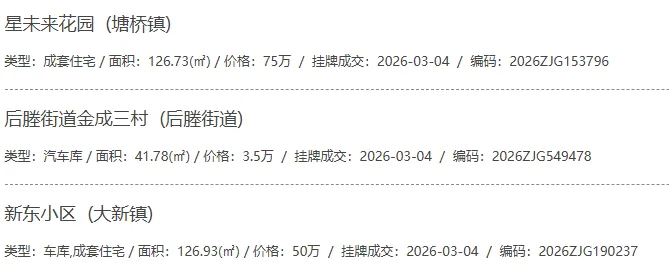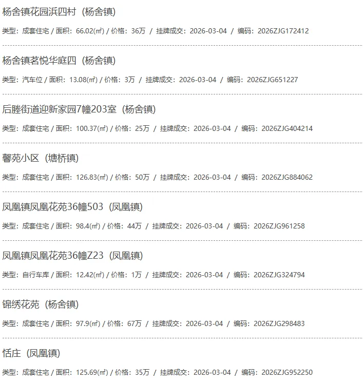 根据张家港房产网(www.zjgzf.cn)整理,(2026-03-04至2026-03-04)总共52套二手房网签挂牌成交(含自行车库及汽车库),数据根据住建局官方网签平台整理,并已同步至各对应小区的成交明细,特别提醒:此处数据及各小区成交数据中凡标注(来自网签挂牌)的,均是根据政府网签挂牌系统整理,价格可能不准,请谨慎采信;并仅作为您买房卖房的参考而非决定依据。以下为数据明细: