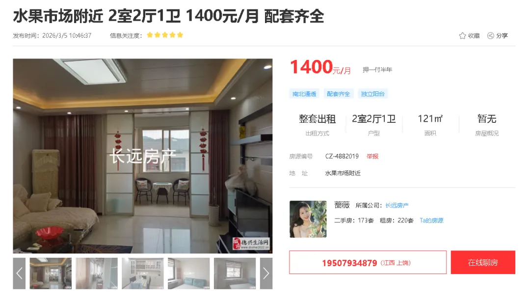 【德兴房产】水果市场附近2室2厅1卫仅需1400元/月配套齐全,配套设施完善,近农贸市场,生活方便