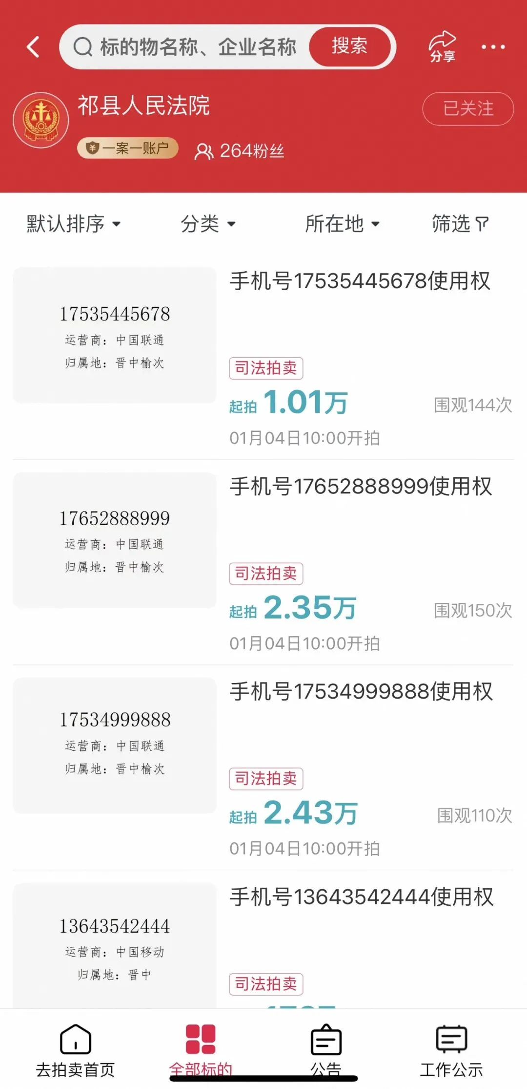 找到并点击您所要的拍卖标的物