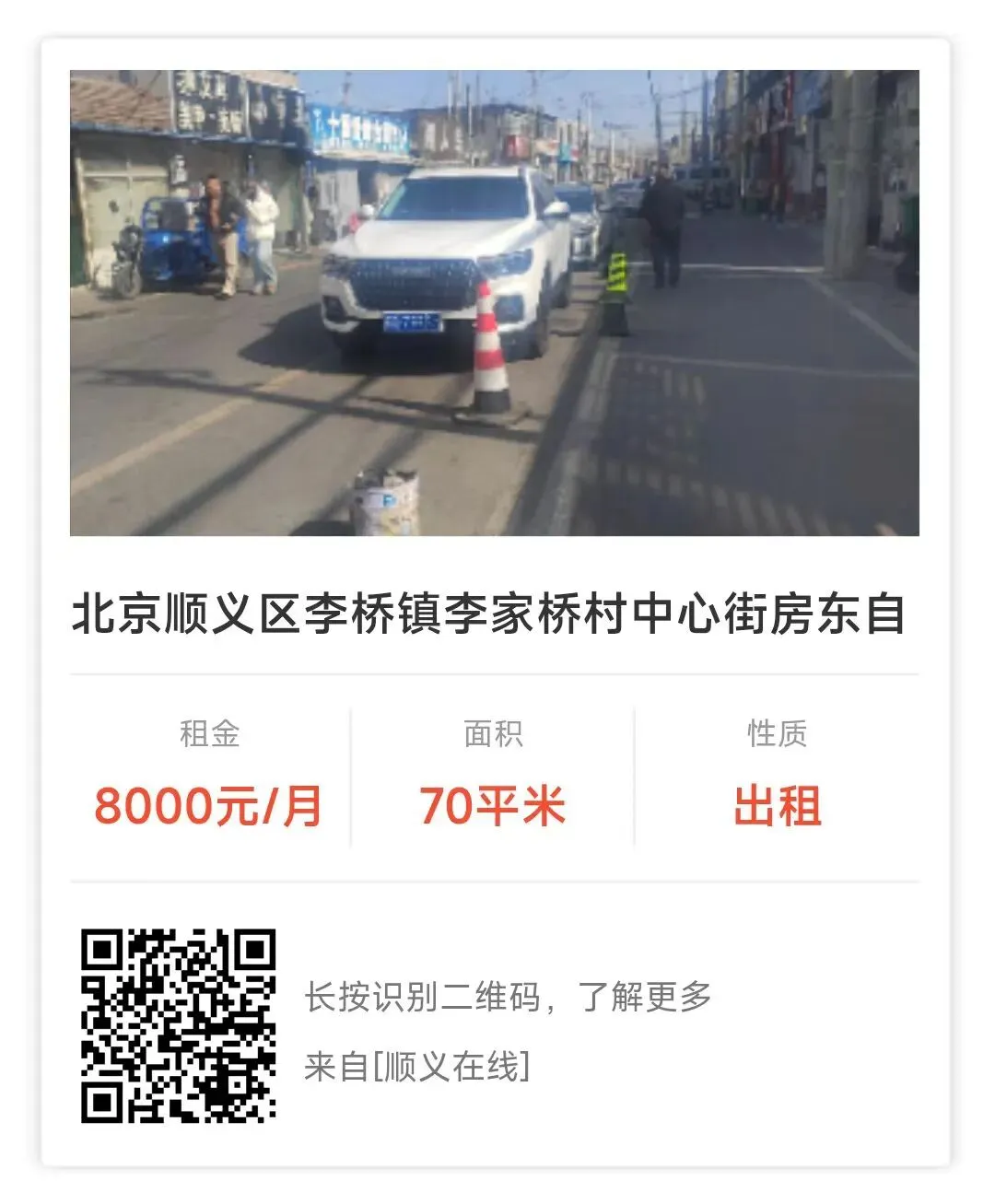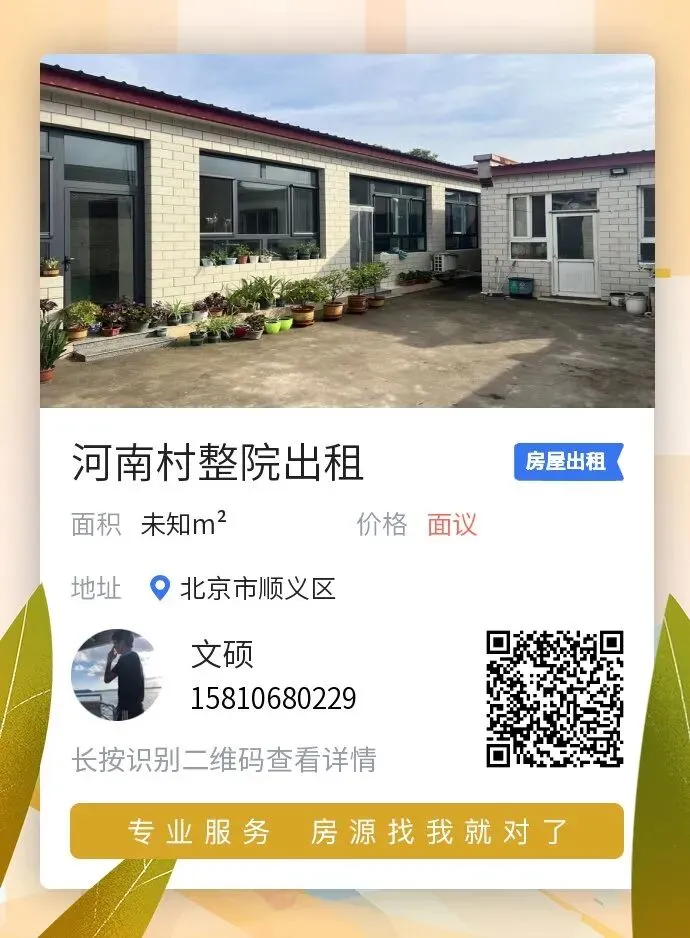 (发布信息有三种方式:顺义在线APP/顺义同城掌圈/提交本页面下方“阅读原文”)出租:顺义杨镇齐家务村